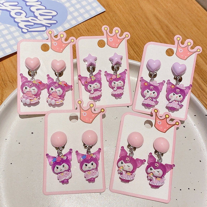 Girls' Cute Kuromi Earrings Sanrio Cartoon Kidsren's Ear Clips Without Pierced Ears and No Ear Damage Girls' Earrings Jewelry