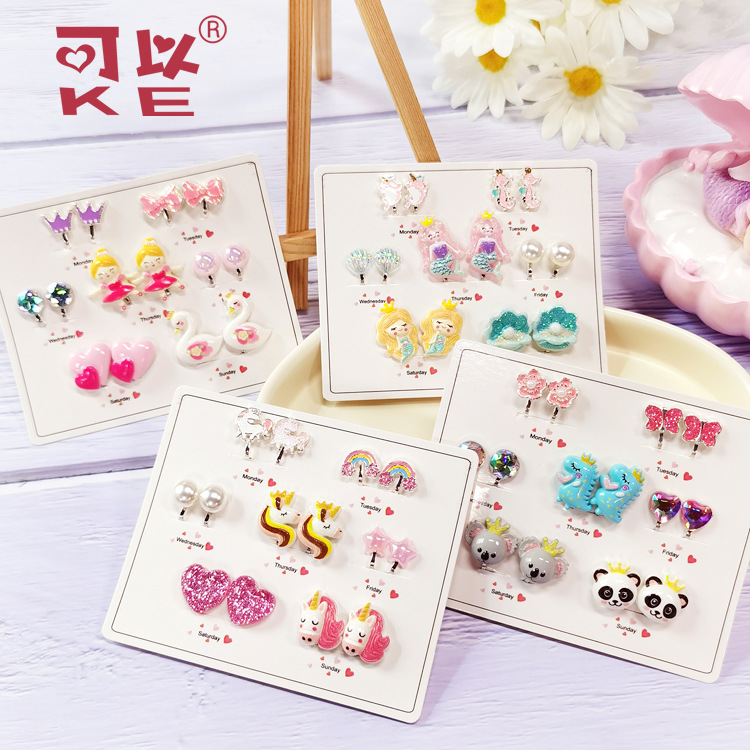 [Can] Cross-Border Hot-Selling Girls Cartoon Pierced Earrings Princess Unicorn Mermaid Anti-Pain Ear Clip