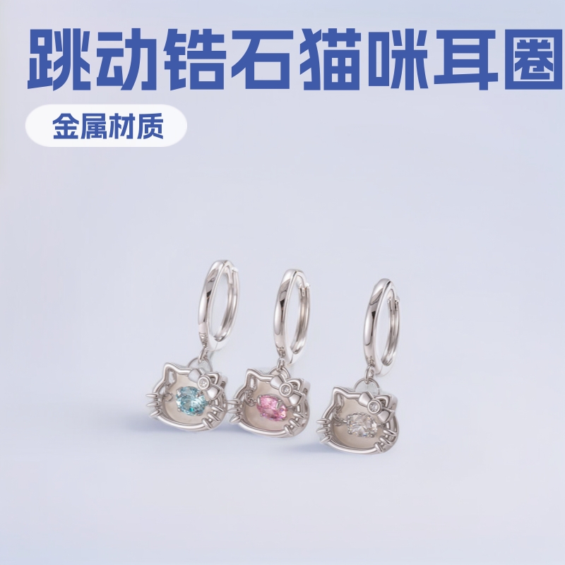 Henson's New Sweet Girly Style Jumping Zircon Hollow Cat Head Pendant Earrings Niche Design Hoop Earrings
