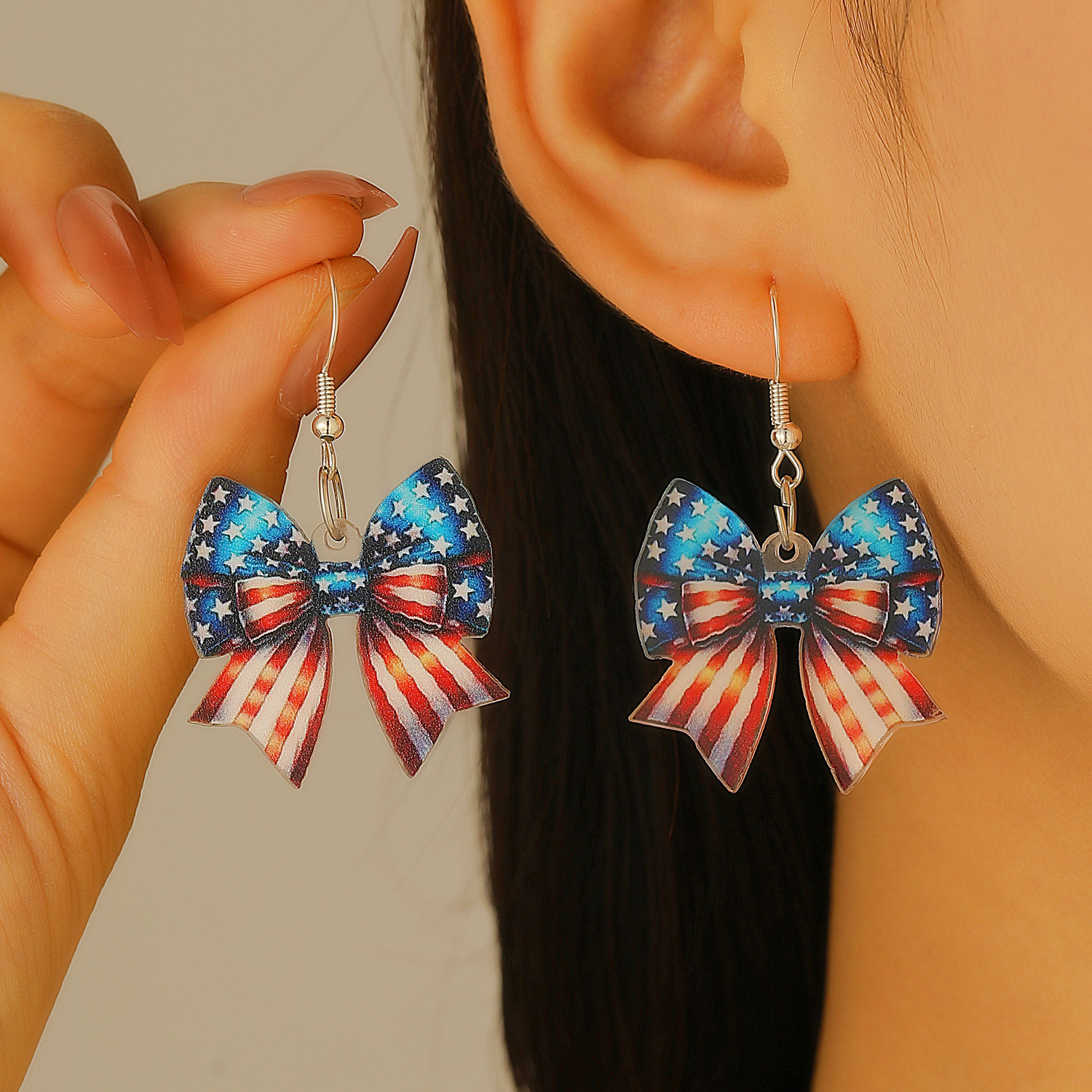 Cross-Border Acrylic Earrings American Flag Bow Red White Blue Patriotic Independence Day Women's Earrings Ear Accessories Decor