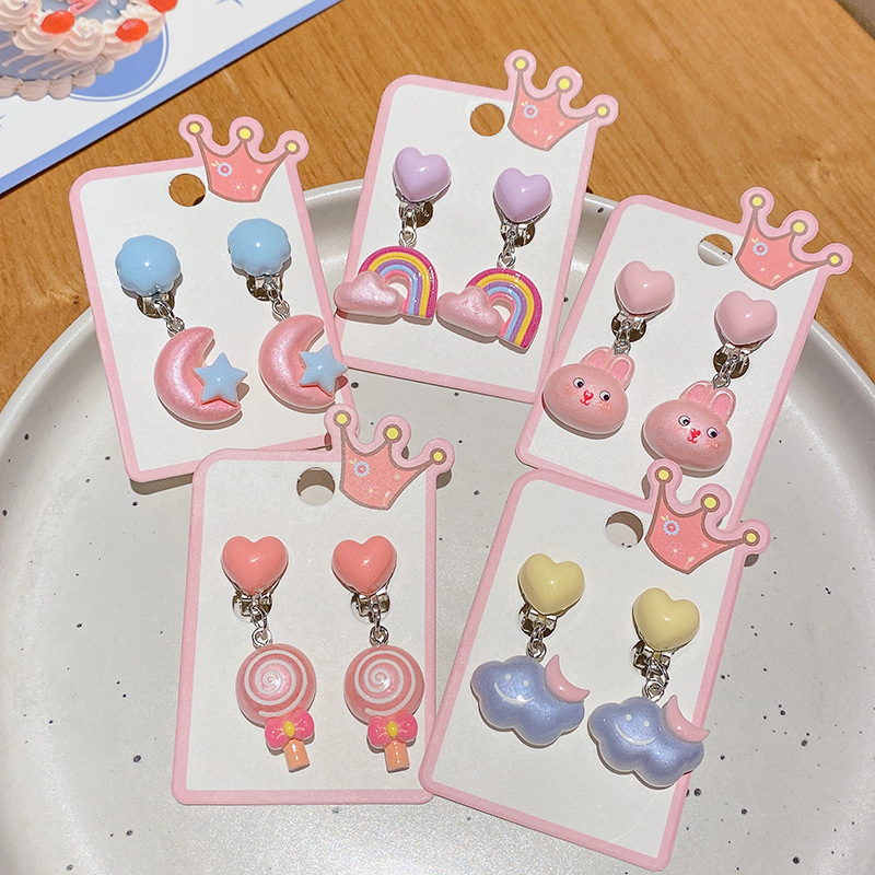 New Cartoon Children's Ear Clip Rainbow Moon Cute Girl Earrings Girls Baby Non-Hurt Ear Pendant Earrings