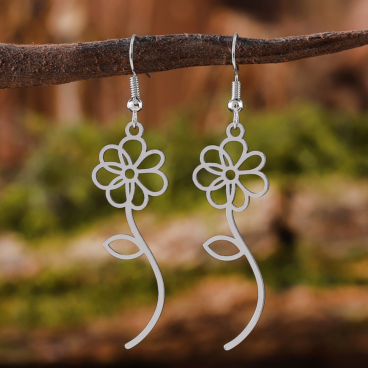 Korean-Style Fresh Hollow Flower Pendant Earrings for Women, Niche Minimalist Elegant Versatile Earrings