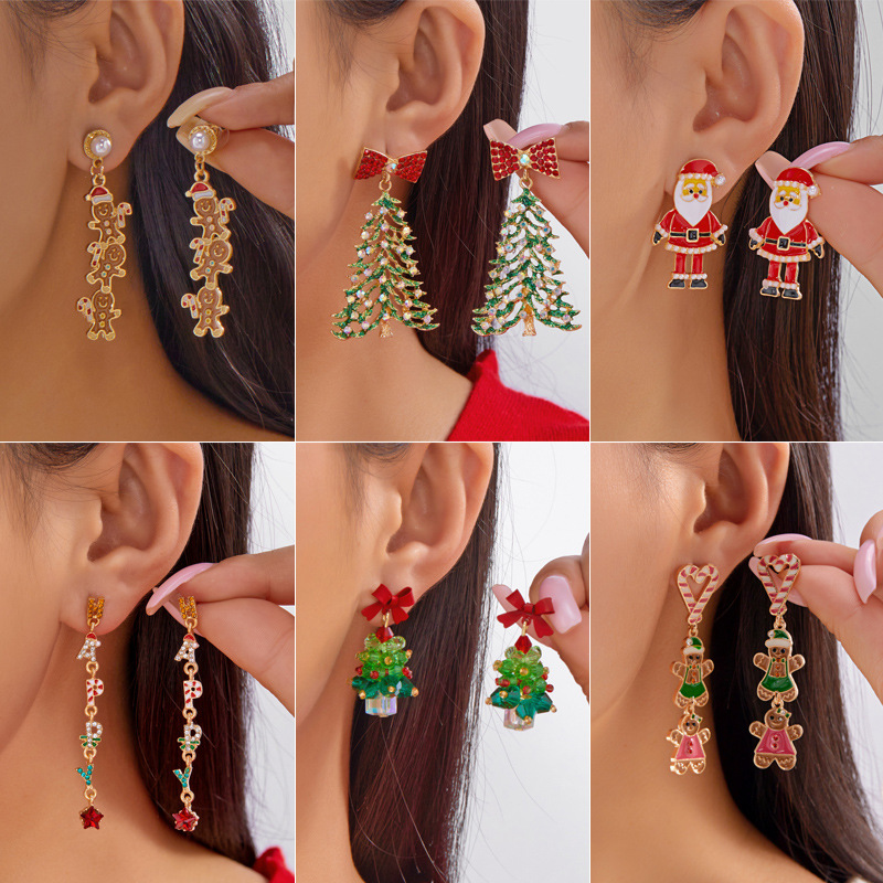 Christmas Atmosphere Earrings with Diamonds, Christmas Tree Gingerbread Man, Niche Fashionable Girl, Cute and Versatile Christmas Earrings