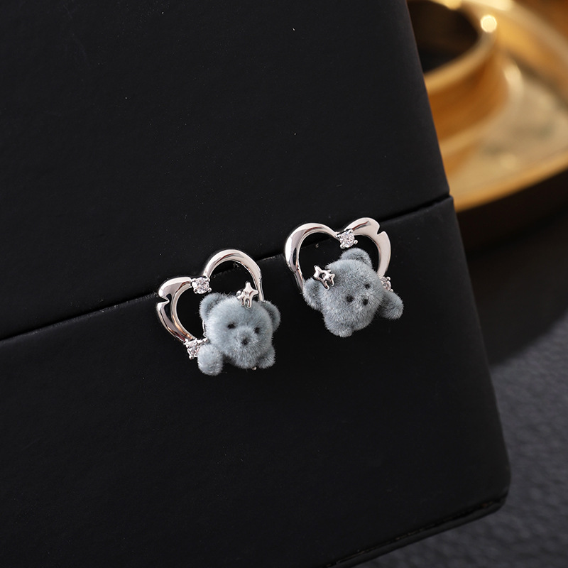 Autumn and Winter Heart Plush Puppy Earrings for Girls, Fun and Cute Niche Design, High-End Trendy Versatile Earrings and Earrings