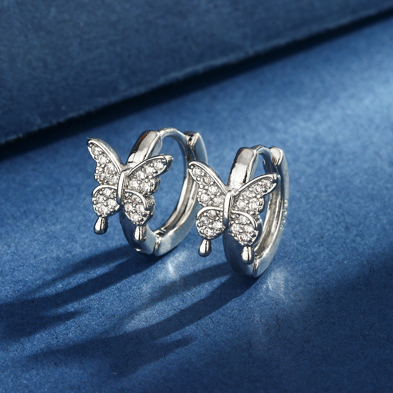 New Arrival Diamond-encrusted Butterfly Earrings Women's Sweet Girl's Heart Fresh Earrings Fashion Simple Small Butterfly Zircon Earrings