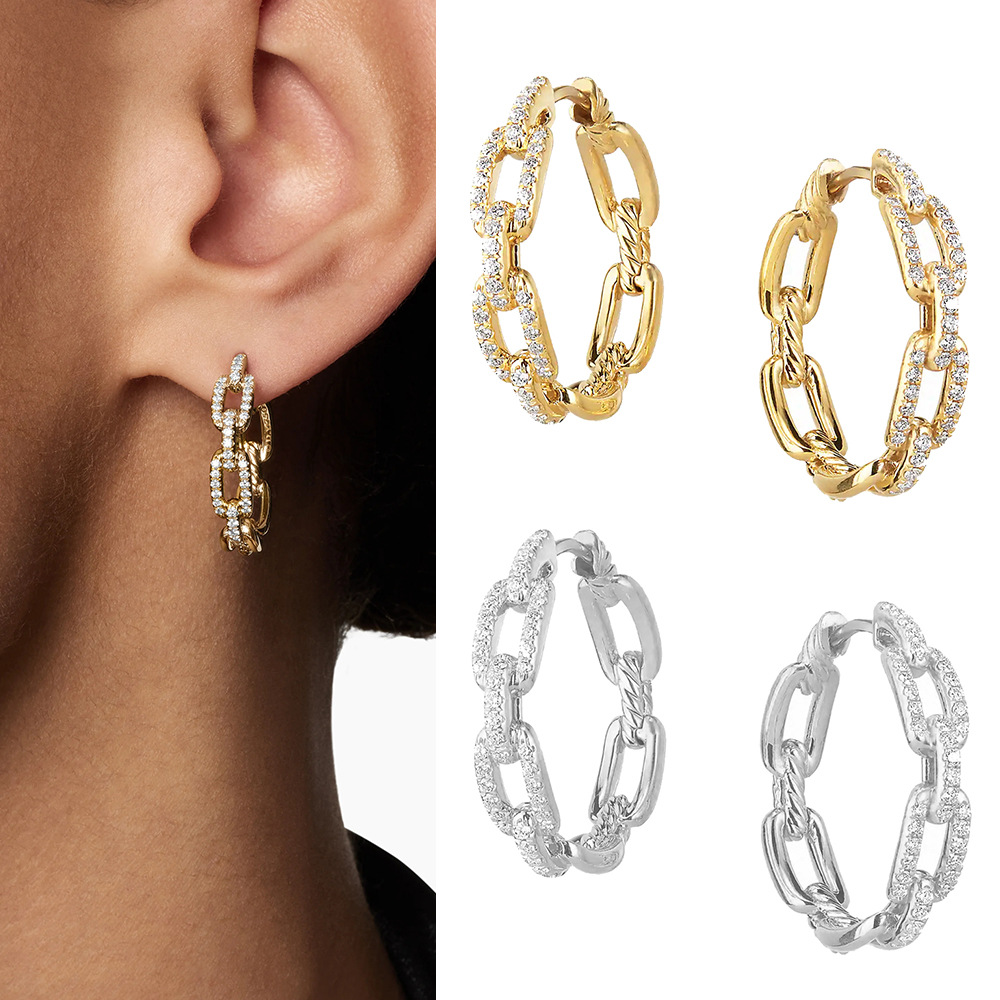 Amazon 2024 Cross-Border Export Hoop Fashion Zircon Hoop Earrings Simple and Versatile Exquisite Gift for Girls