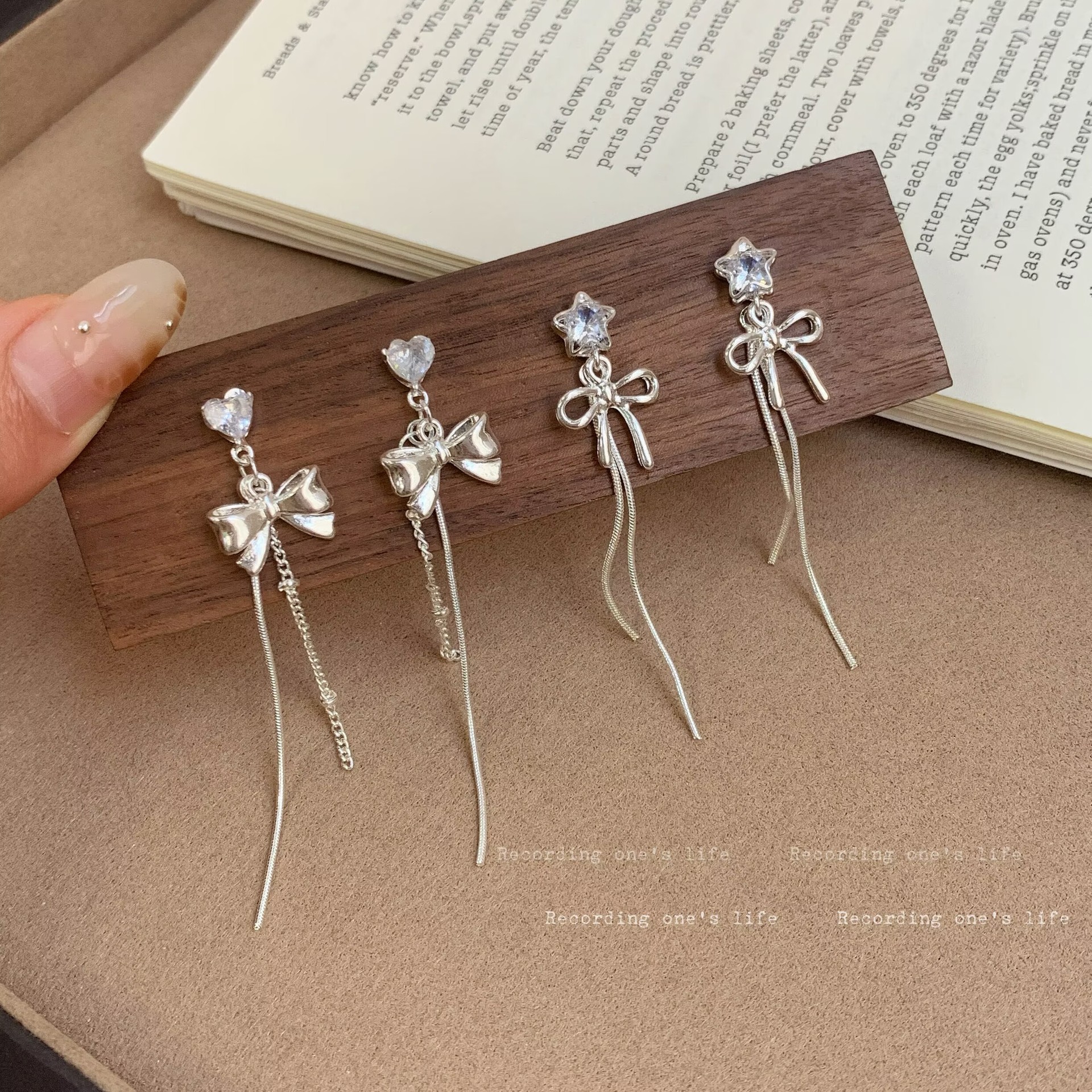 Fashionable and Simple Plain Silver Bow Long Tassel Earrings for Women with Silver Needle Stars, Sweet and Girly, Face-Slimming Earrings