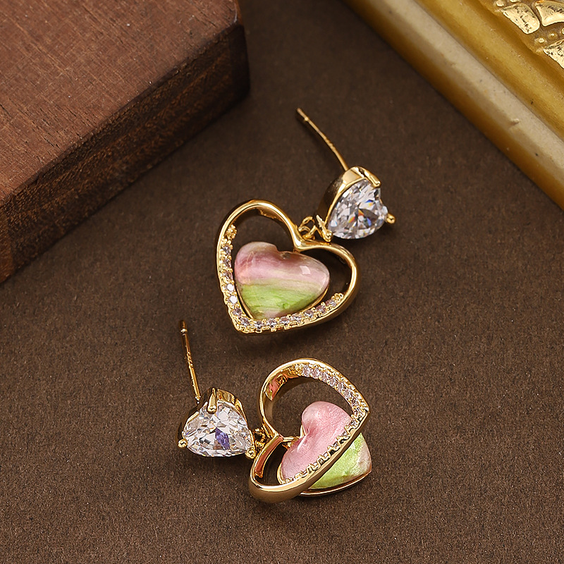 Silver Needle Sweet Temperament Fairy Style Full Diamond Zircon Heart Resin Earrings Light Luxury Simple High-End Luxury Earrings