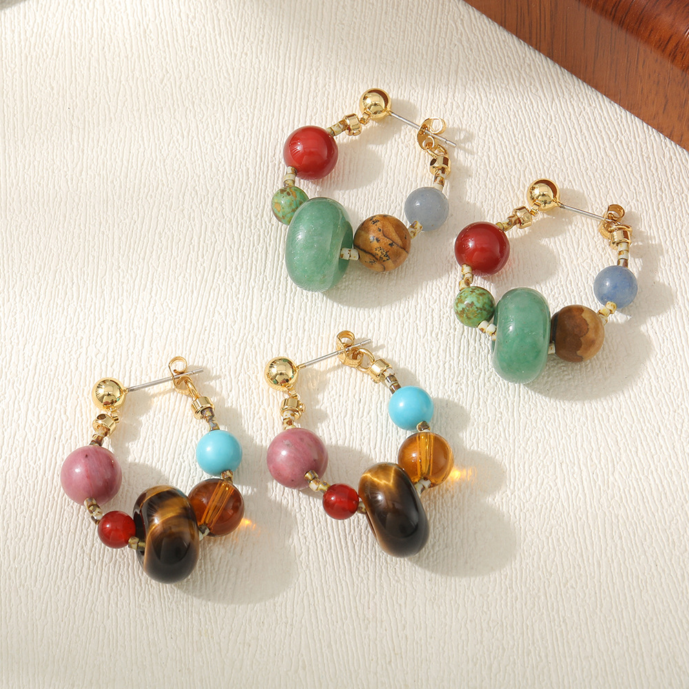 Guofeng Natural Tiger Eye Stone Ear Ring Contrast Color Candy Color Handmade Beaded Earrings Women's Sweet All-match Vintage Earrings