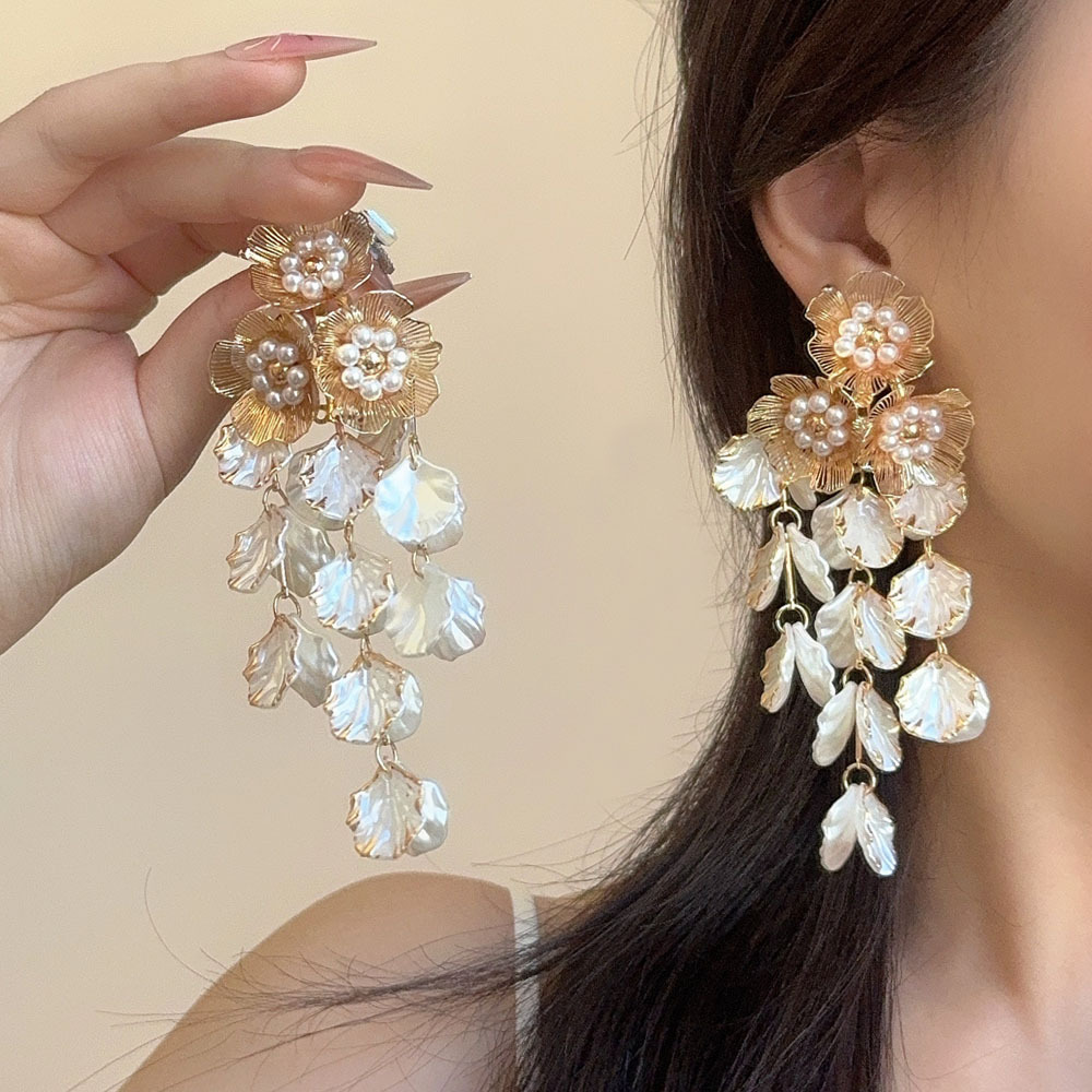 Sweet Super Fairy Pearl Flower Tassel Earrings for Women New Chinese Style Retro Fashion Light Luxury Earrings High-End Ear Jewelry