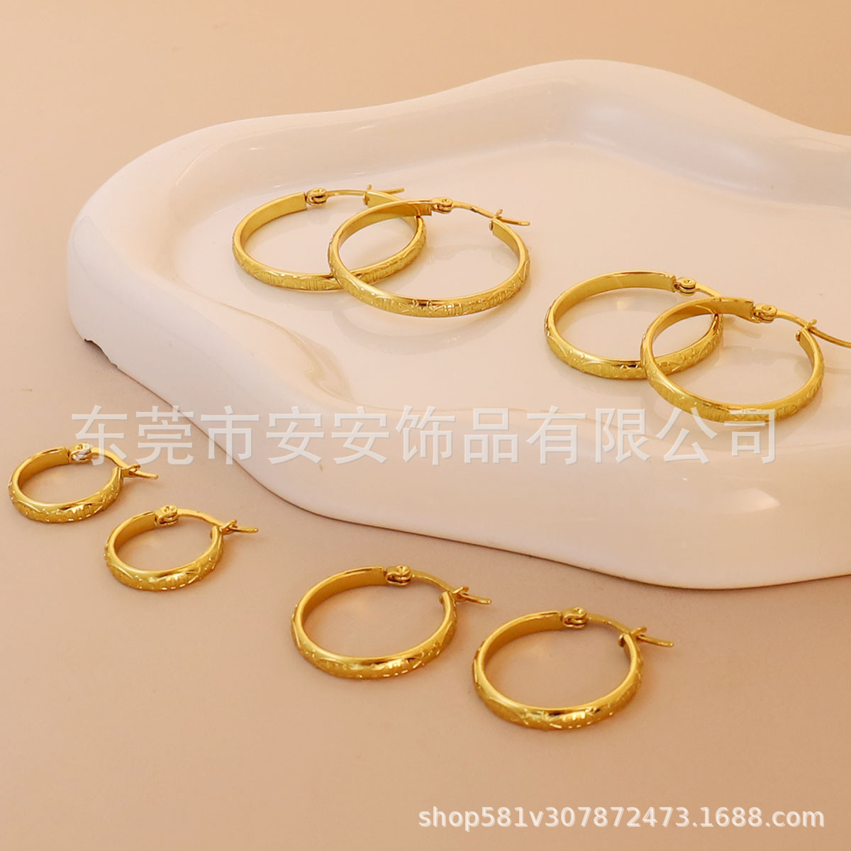 Cross-Border Electroplated 18K Gold Earrings Stainless Steel Fashion European and American Style Round Dragon Scale Texture Niche Trendy Earrings for Women