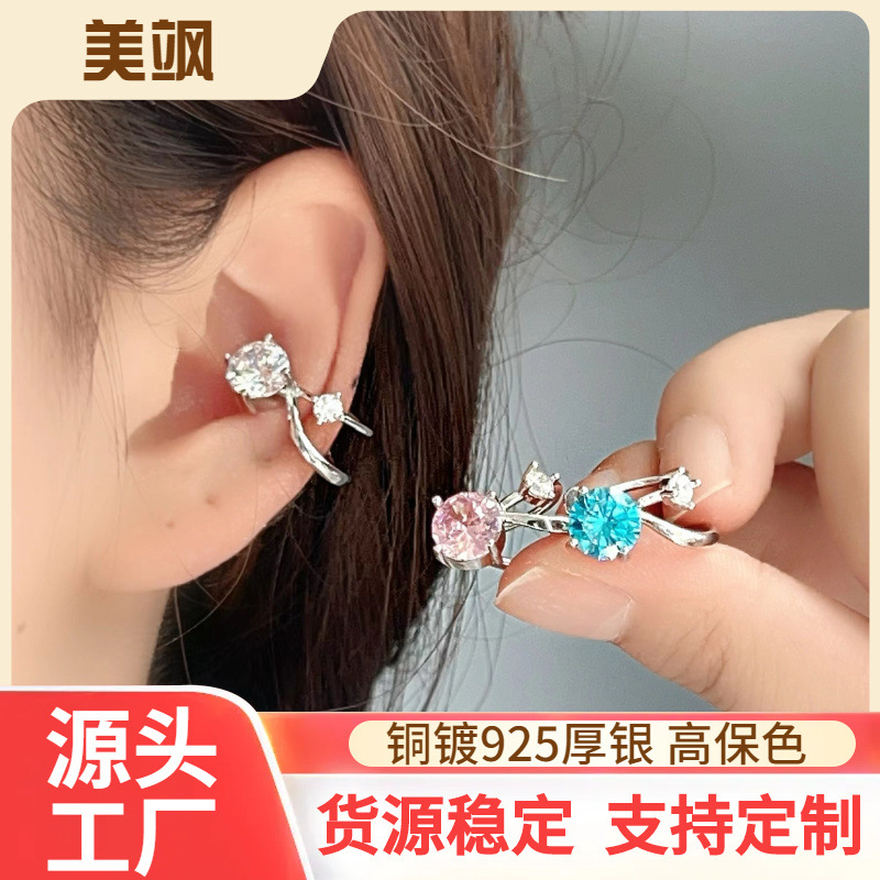 925 Silver-Plated Korean-Style Ear Cuffs Dopamine Zircon Silver-Plated Ear Cuffs for Women with a Sense of Design, Fashionable Non-Pierced Earrings