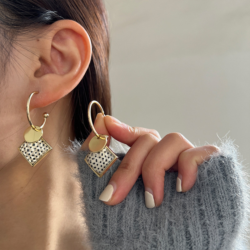 Square polka dot earrings 2024 New South Korea elegant Internet celebrity earrings female personality design high-grade fashion