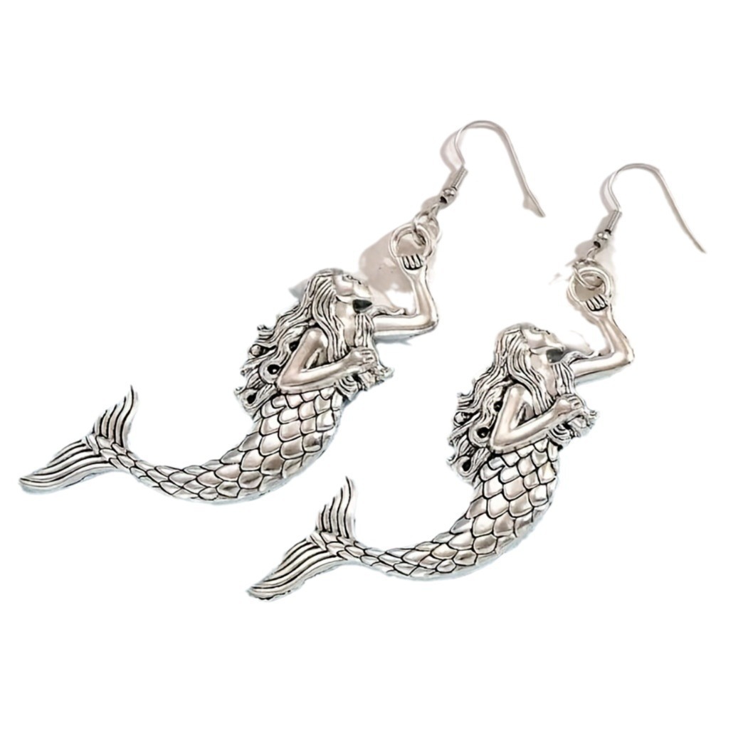 European and American cross-border Fashion sweet ocean silver-plated mermaid earrings retro elegant cute fairy tale female earrings