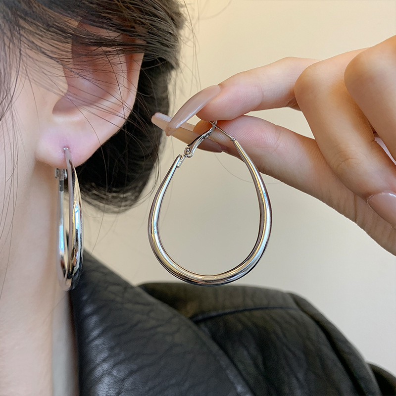 Square Face Suitable Drops of Water Ring Earrings Women's Light Luxury Advanced Sense Ring Earrings Cold Wind Exaggerated Big Ear Ring