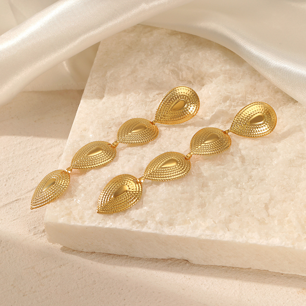 European and American Fashion Geometric Water Drop Stainless Steel Earrings Personalized Retro Ethnic Trend Titanium Steel Pendant Earrings for Women Wholesale