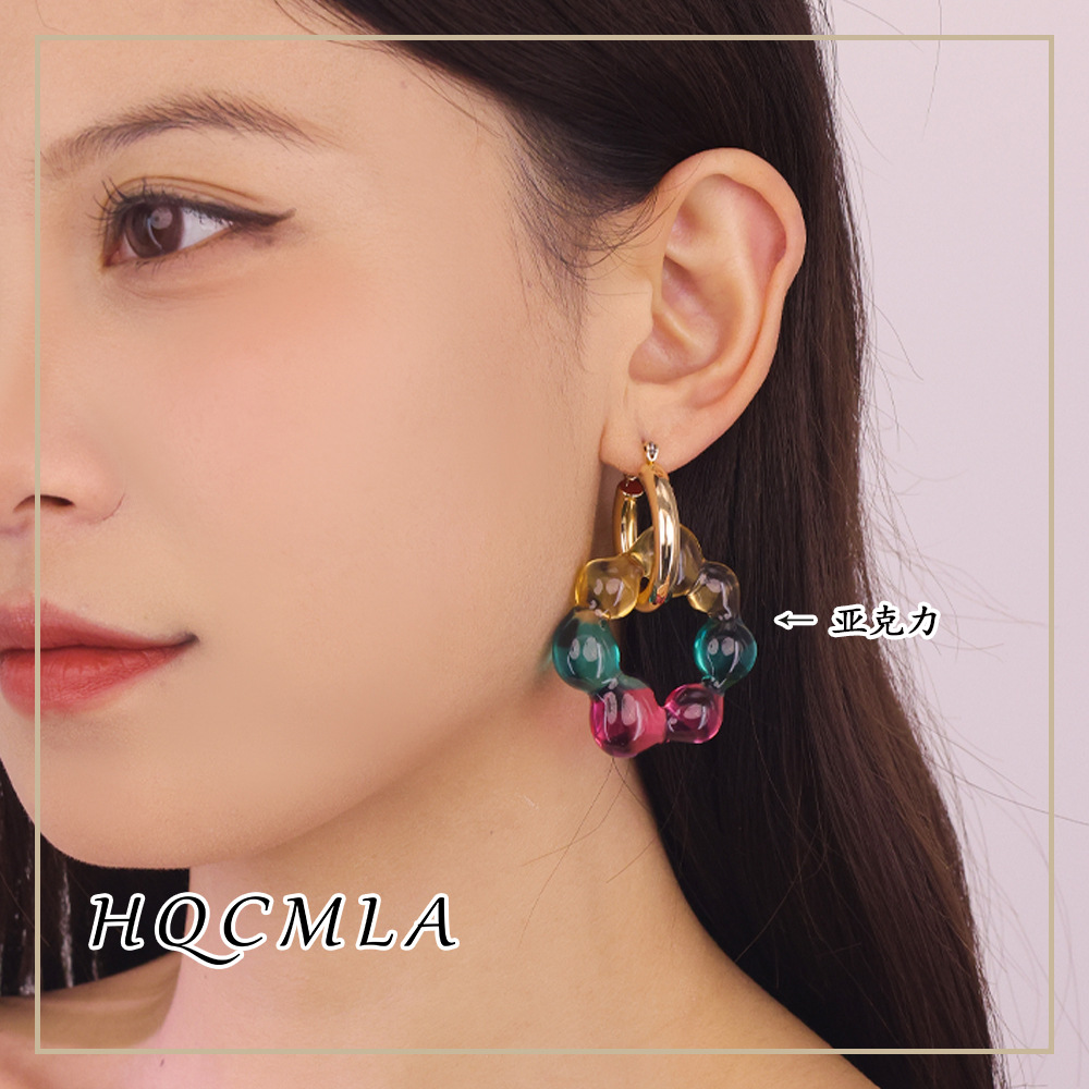 Vintage Hong Kong-style Colorful Hole-free Ear Clip for Girls High-end Sense Fresh and Fresh 2025 New Distinctive Contrast Color Fashion Earrings