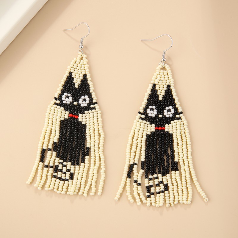 European and American original design Bohemian tassel earrings ethnic animal cat handmade woven rice beads earrings for women