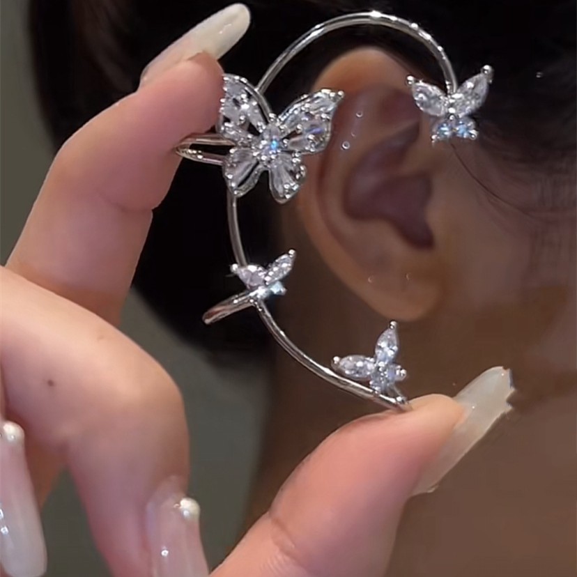 Shake Tone Same Style Butterfly Ear Hanger Niche Design Earrings Without Ear Holes Fairy Style Sweet Lady Zircon Earrings Ear Clip