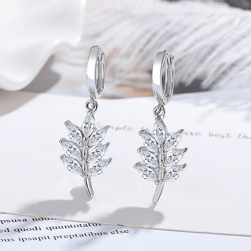 New Earrings with Zircon Leaf Earrings for Women, Korean Style Forest Leaf Earrings, Versatile Trendyy 925 Silver Earrings