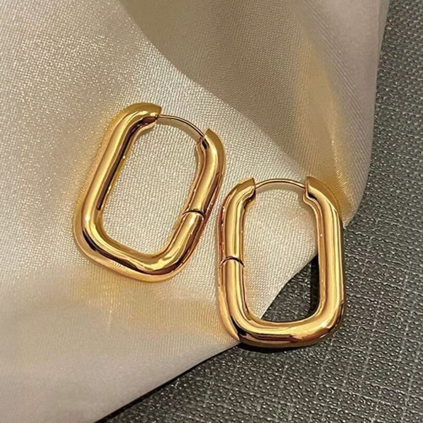 European and American Hot-Selling Stainless Steel Earrings Simple Trendy Women's U-Shaped Ear Buckle Titanium Steel Gold-Plated Oil Pressure Earrings Earrings Wholesale