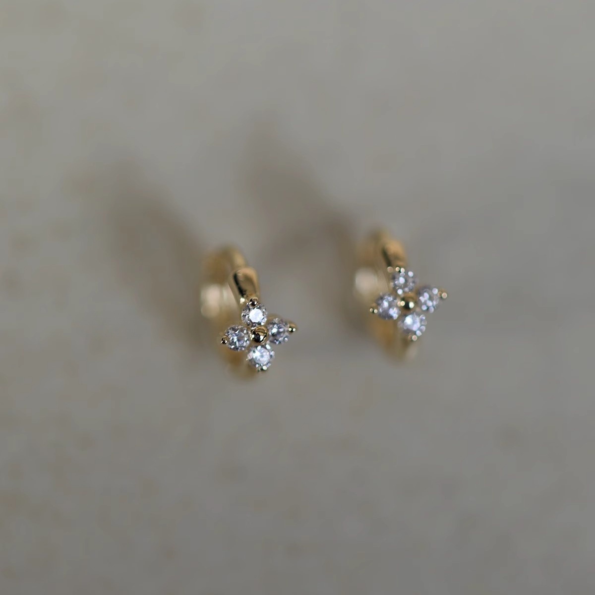 Four-leaf flower ~ S925 sterling silver plated 14K gold mini flower ear buckle ear bone ring sweet delicate low ear hole earrings