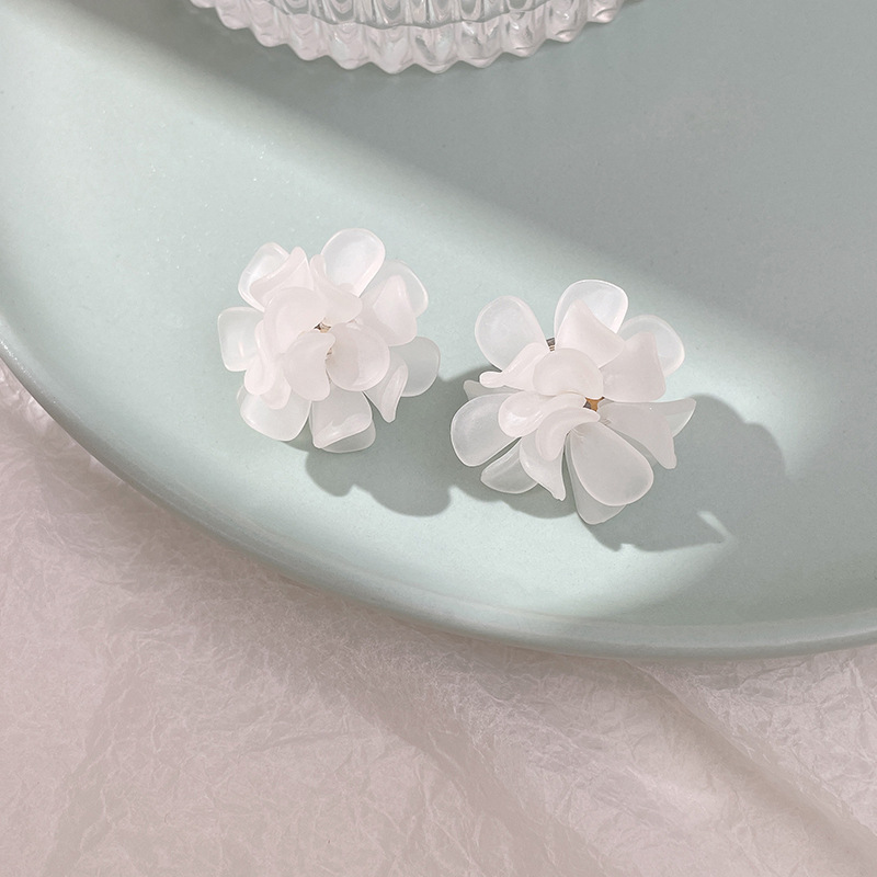 New Acrylic Petal Ear Clip Women's Frosted Transparent Color Mori Earrings Sweet Elegant