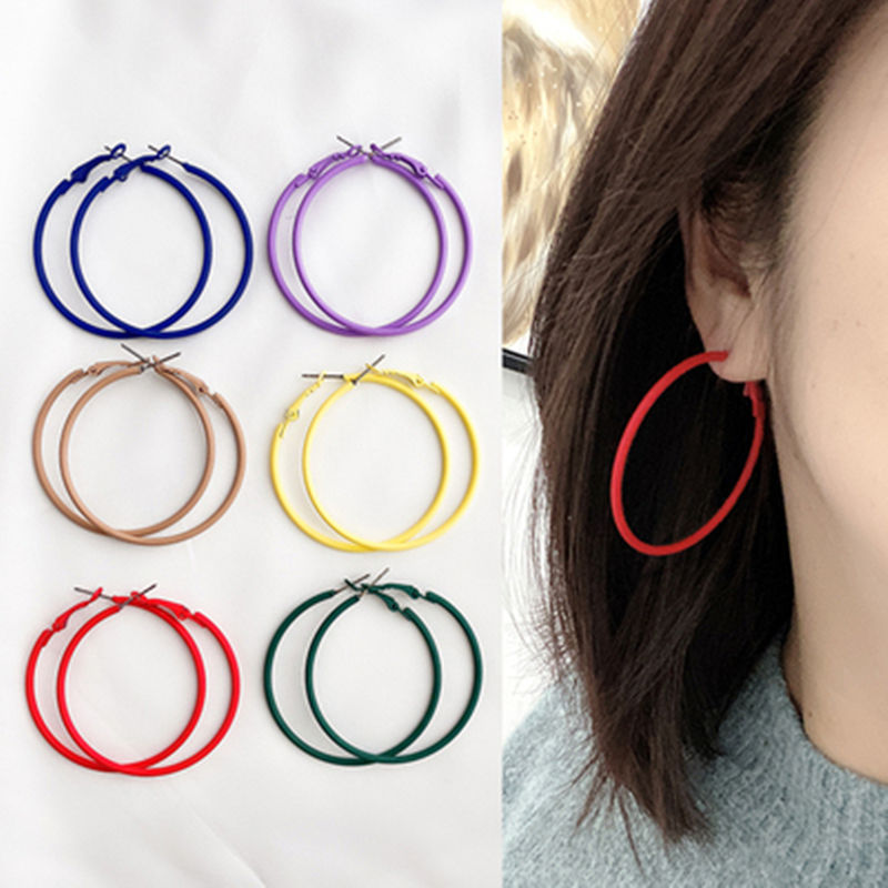 Colorful big earrings women's Korean-style elegant earrings sweet big circle earrings fashion earrings