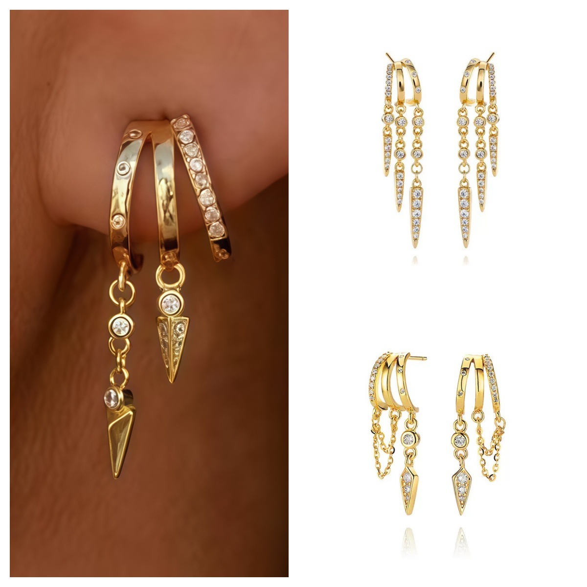 Fangyuan Face Suitable Water Drops Plain Hoop Earrings Women's Light Luxury Advanced Sense Hoop Earrings Cold Wind Exaggerated Big Ear Ring