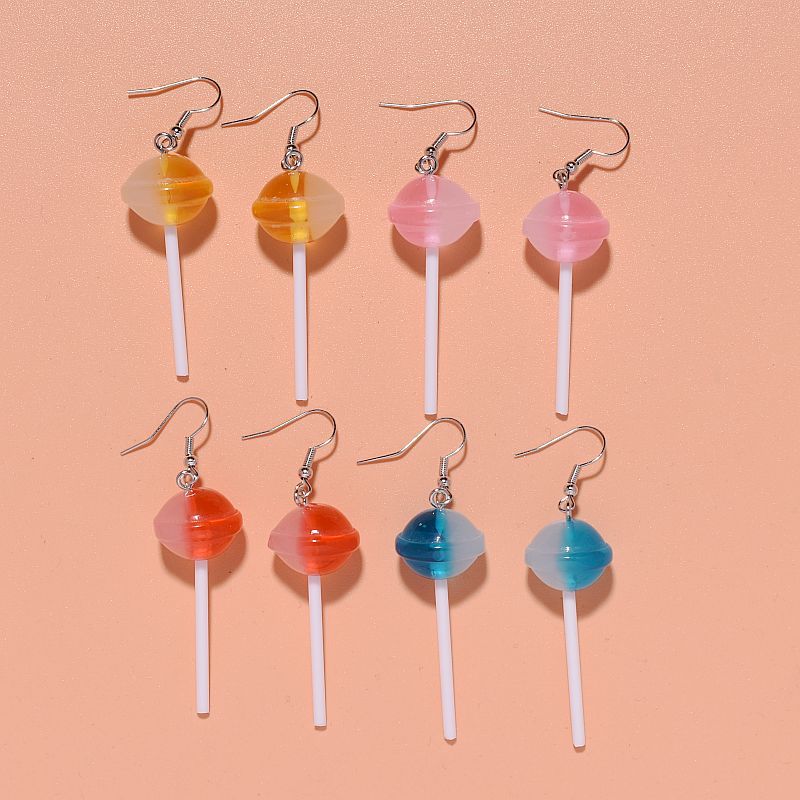 Cross-border simulation food and play earrings personalized Sweet creative three-dimensional resin round lollipop earrings long earrings for women