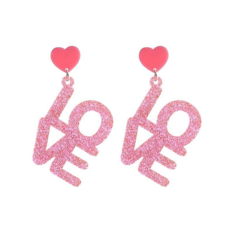New Valentine's Day Pink Sequin Love Acrylic Earrings Romantic Sweet Temperament Personalized Earrings for Women Wholesale