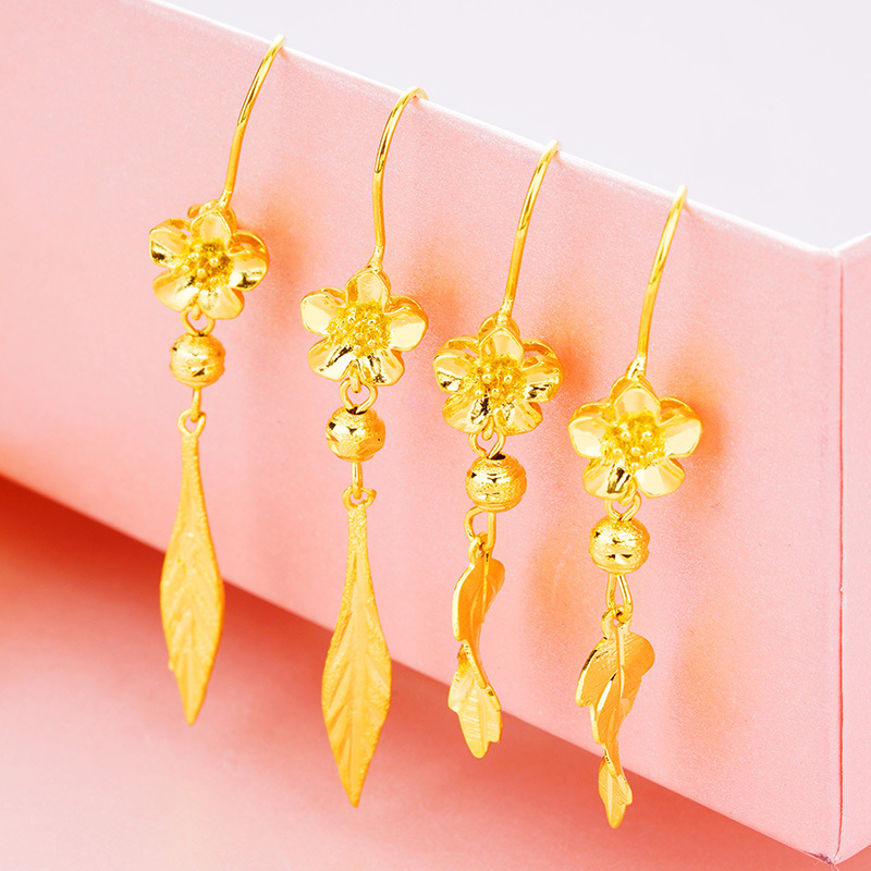 Fashion Korean version of Vietnam gold Women's flower earrings wholesale long-lasting non-fading European currency gold leaf earrings jewelry