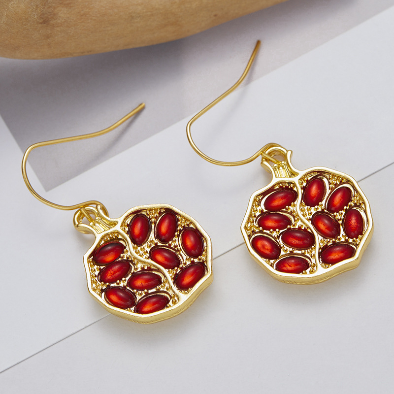 Lan Jing Amazon Cross-Border E-Commerce Hot-Selling New Pomegranate Gold Earrings European and American Creative Women's Earrings