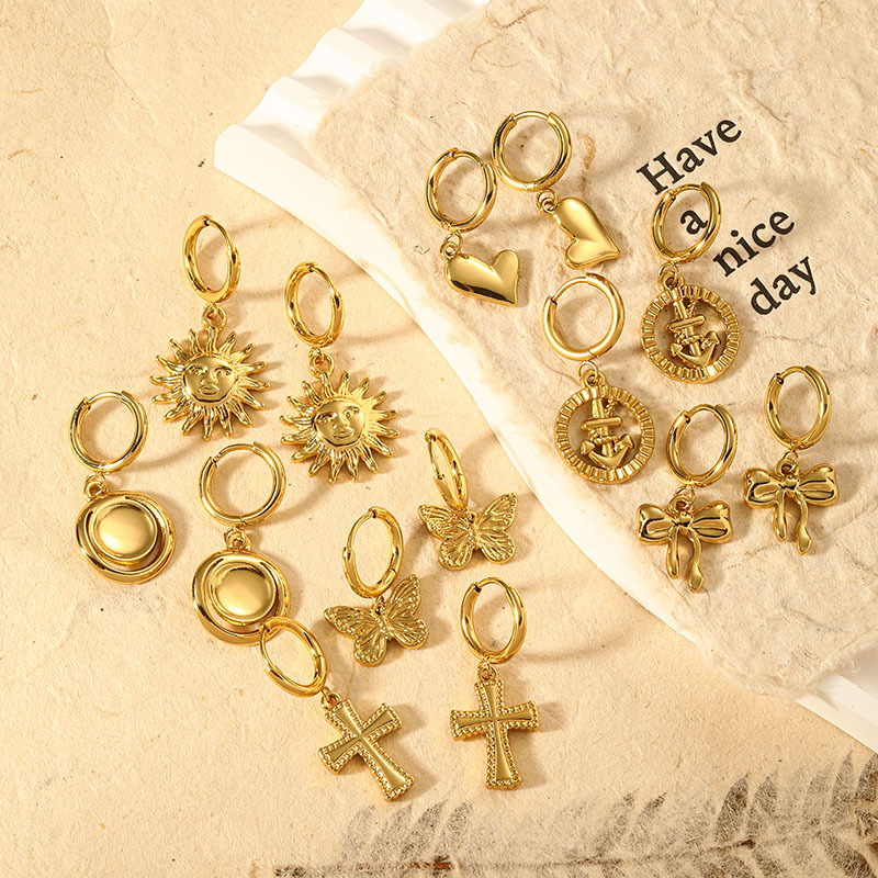 Amazon Cross-Border New Product Titanium Steel Earrings Bow Pendant Exquisite Sweet Cute Versatile Women's Earrings Wholesale