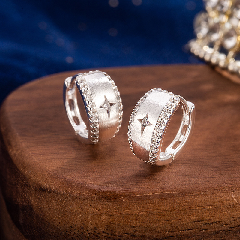 Exquisite Micro-Embellished Four-Pointed Star Brushed Earrings for Girls, Fashionable and Versatile Simple Earrings