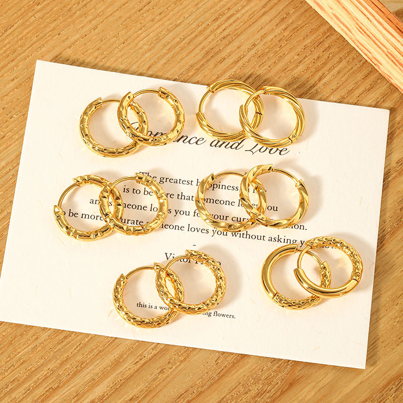 Ins European and American Fashion Gypsophila Titanium Steel Round Women's 18K Earrings Simple Style Stainless Steel Plated 18K Earrings