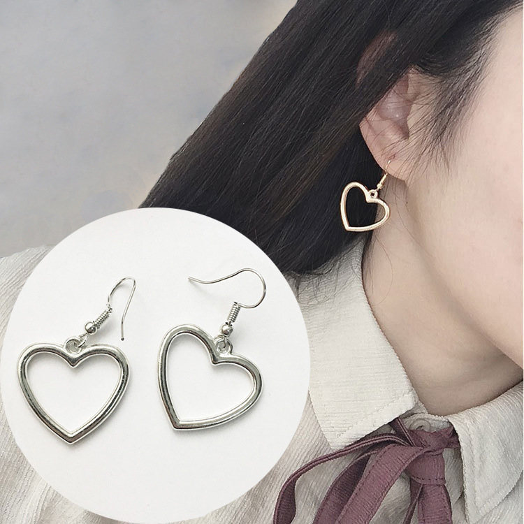 Japanese Harajuku Soft Cute Girl Hollow Geometric Heart-shaped Sweet Golden Love Earrings Earrings Trendy Earrings