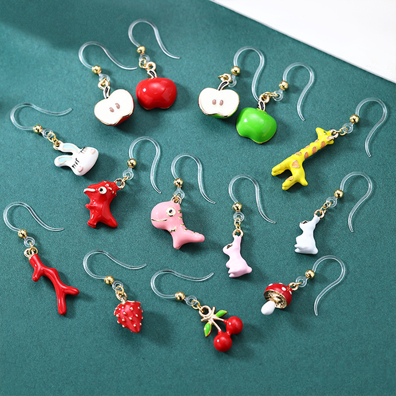 Japanese and Korean Explosions Children's Fun Cartoon Pendant Earrings Exquisite Cute Fruit Ear Hook Sweet Girl Little Dinosaur Earrings for Women