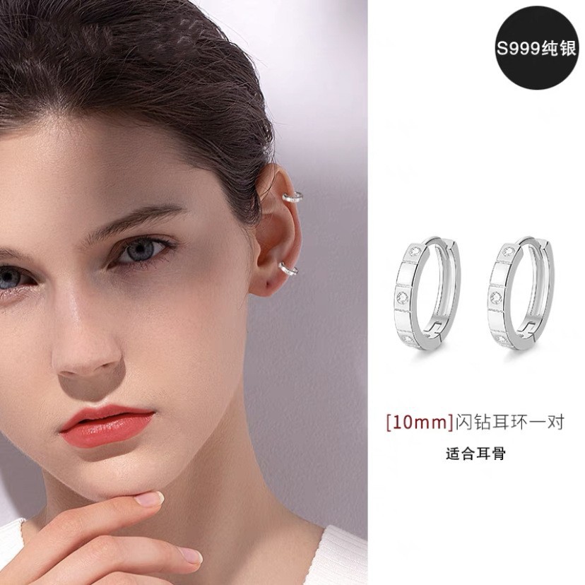 s999 Sterling Silver Small Circle Ear Buckle Women's Light Luxury Cold Style Trend Personalized Simple Small Fragrant Style Flash Diamond Earrings Wholesale