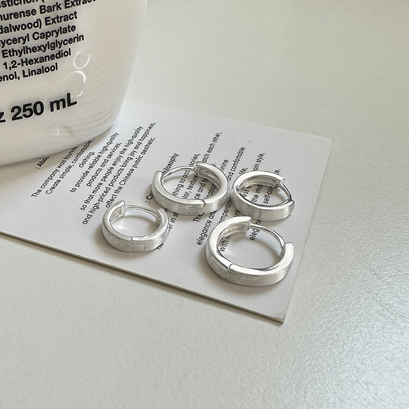 Square line brushed earrings women's S999 sterling silver frosted earrings sweet cool handsome fashion high-grade earrings plain ring earrings
