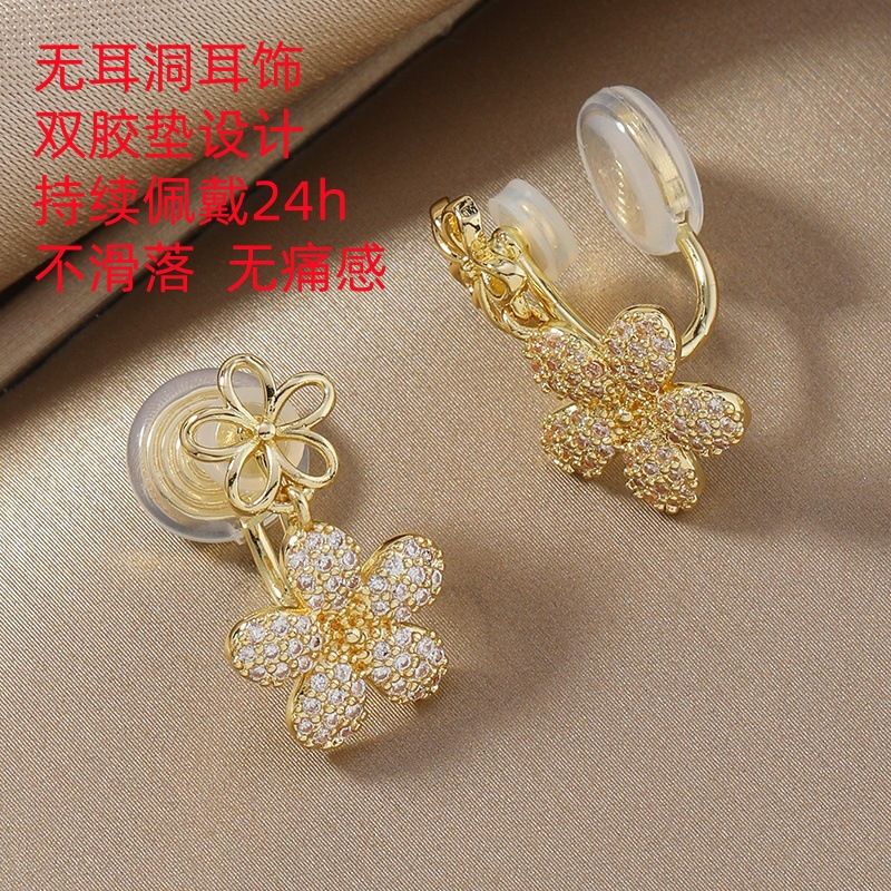 Ear-free Mosquito Incense Plate Ear Clip Golden Small Flower Zircon Small Exquisite Sweet Elegant Earrings New Women's Earrings