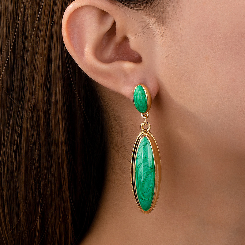 1 Pair of European and American Fashion Personality Retro Enamel Drop Glaze Metal Drop Long Women's Earrings Suitable for Banquet Wear