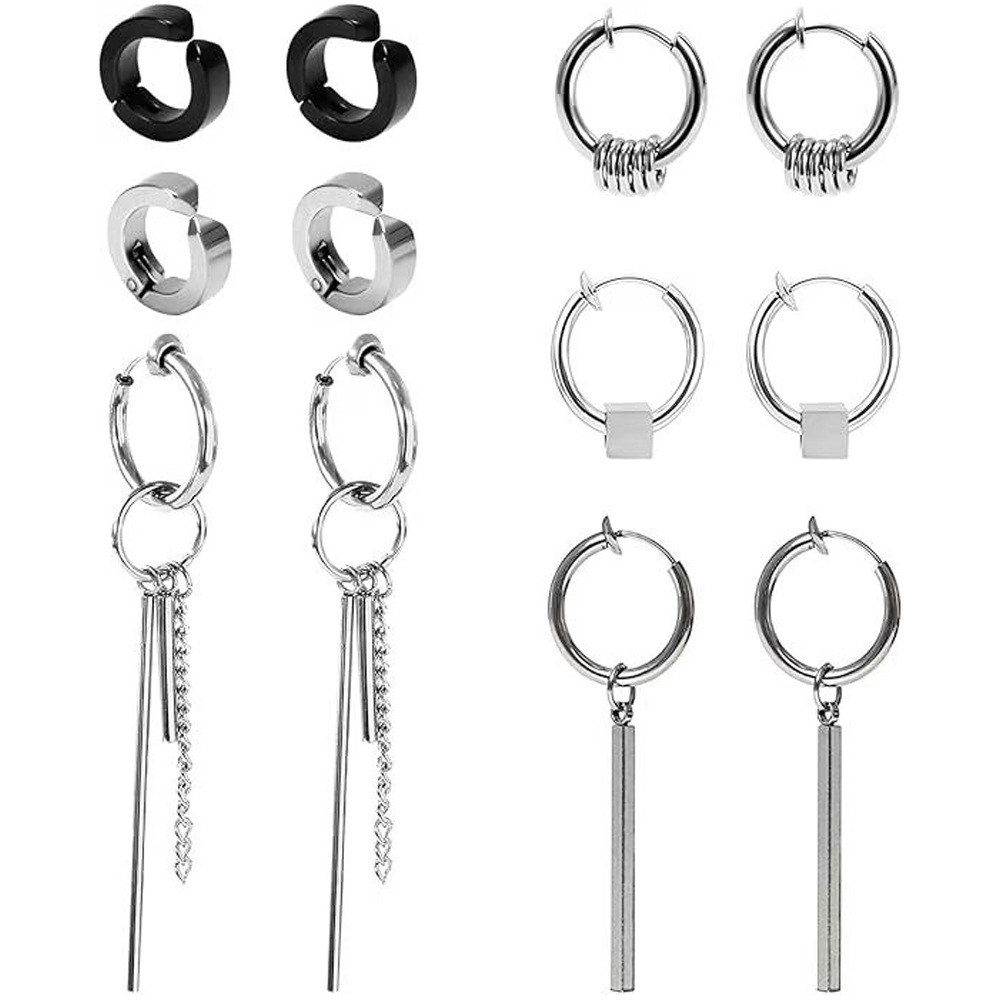 Amazon Earrings Trendy Men's and Women's Long Straight Stick Round Square Ear Clips Korean Straight Stick Ear Jewelry Earrings Titanium Steel