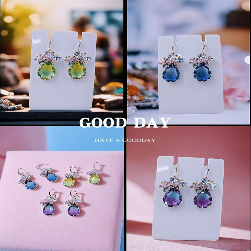 Japanese and Korean Sweet Water Drop Zircon Earrings for Women, Fresh and Fashionable Simple Earrings, Light Luxury Niche Versatile Earrings Wholesale