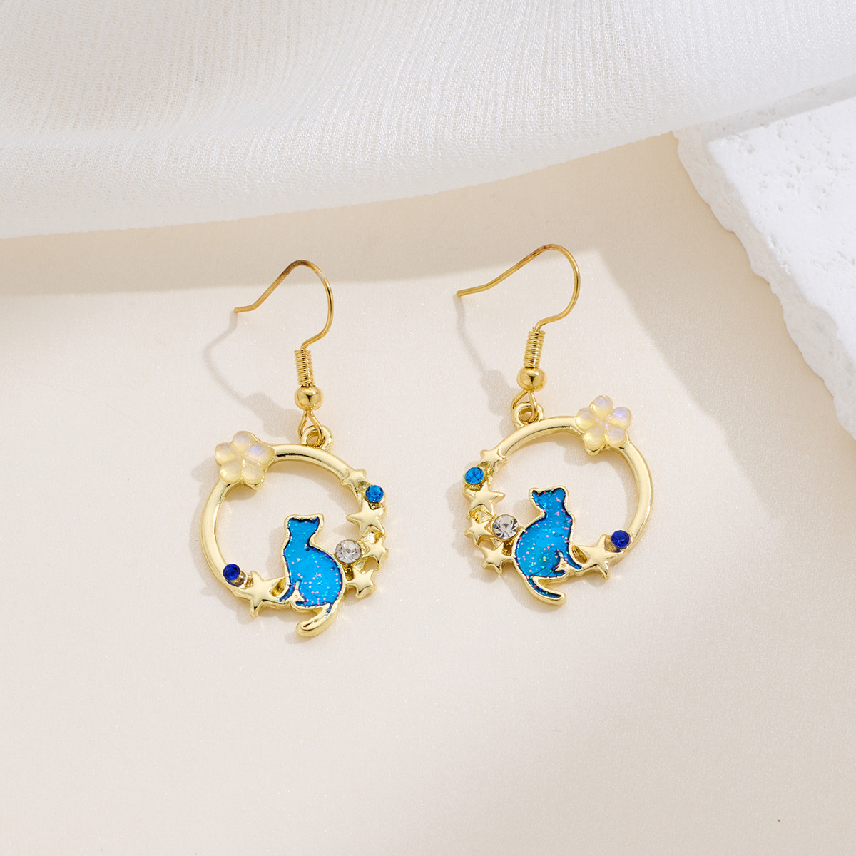 South Korea fashion cartoon kitten geometric round Garland earrings sweet temperament creative student earrings