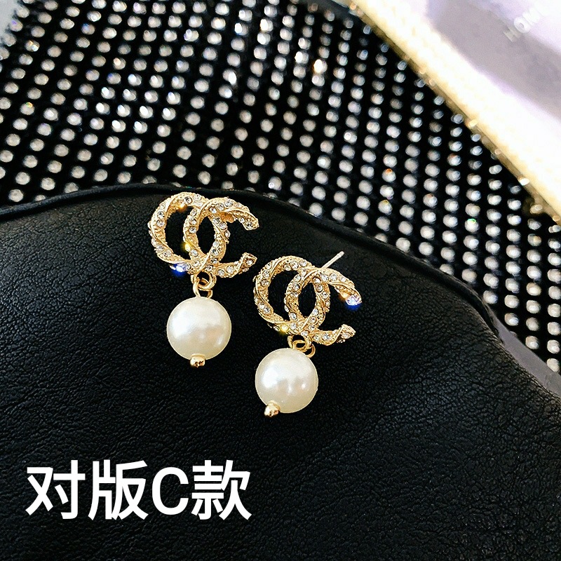 Simple Fashion Twist Small Chanel Style Earrings Sweet Fresh Double C Letter Earrings ins Celebrity High-end Earrings