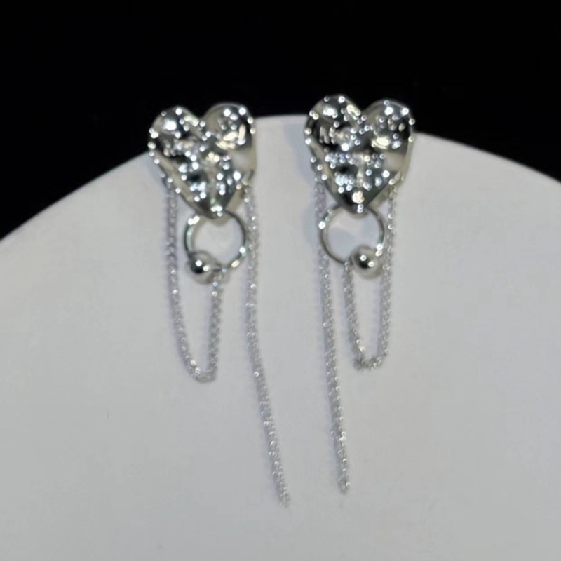 New Sweet Cool Girl Metal Fashion Cool Love Tassel Earrings Niche Design Sense Fashion S925 Silver Needle Earrings