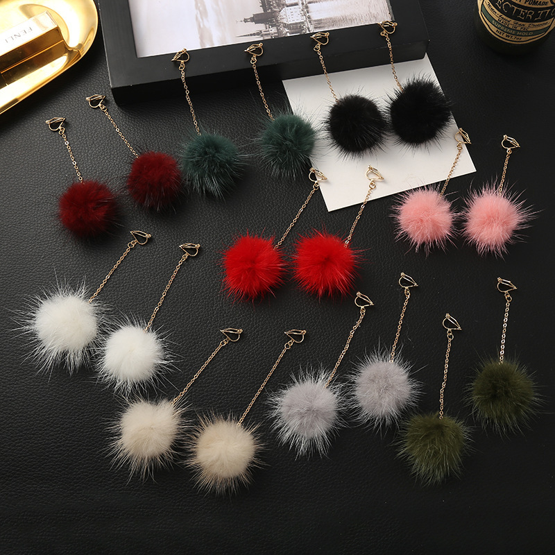 Hair Ball Earrings Women's Fall/Winter Plush Earrings 2023 New Fashionable Cute Fairy Ear Drop Ear Clip