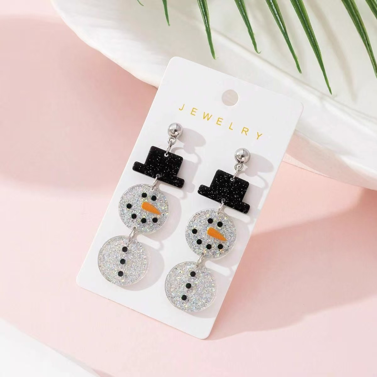 European and American Cross-Border Popular Christmas Decoration Acrylic Sweet and Cute Cartoon Snowman Earrings Stud Earrings