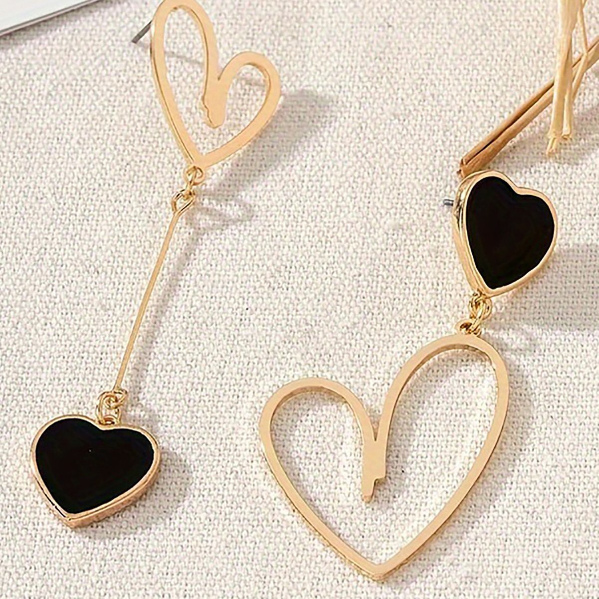 Fashionable and Simple Oil-Drip Heart-Shaped Sweet Asymmetrical Heart Earrings for Women